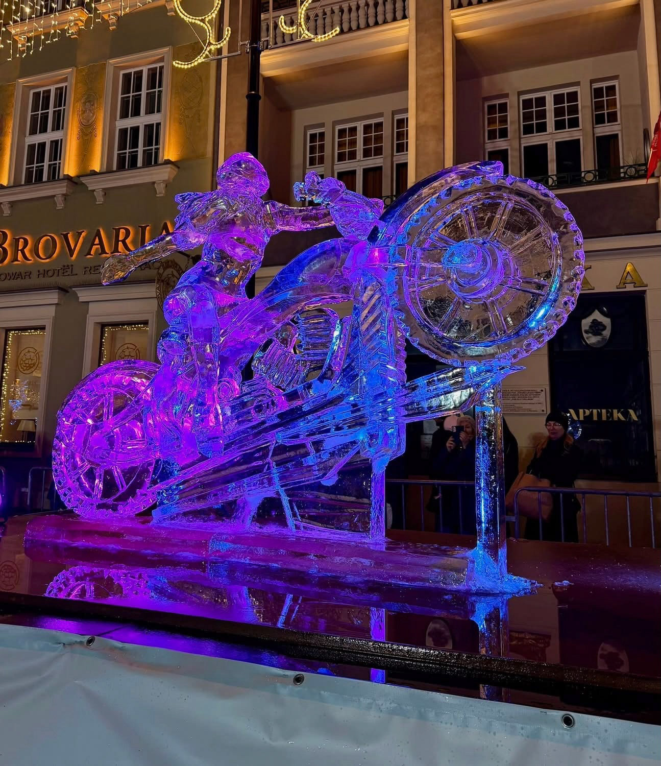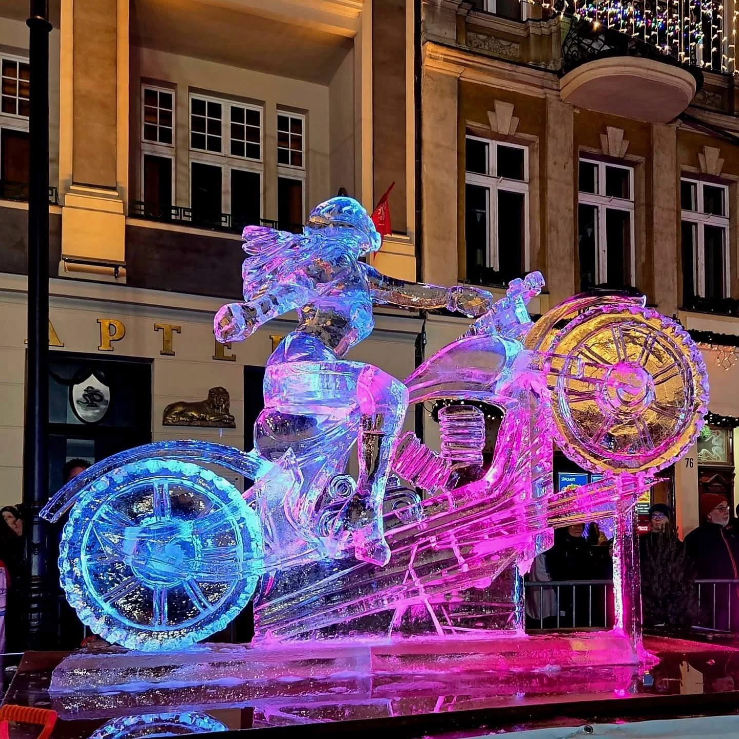 Larger than life size motorcycle and rider.